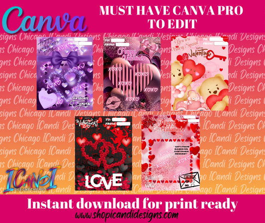 Jumbo Valentine's Treat Card Templates (8x11)